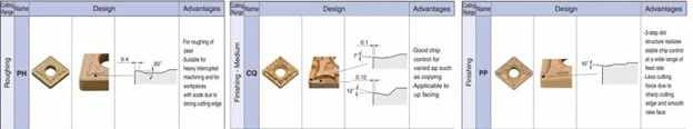 - Lựa chọn thiết kế hình học insert dựa vào ứng dụng hoạt động, ví dụ như tiện thô/bán tinh/tinh