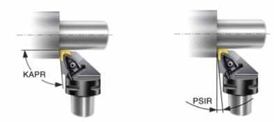 Góc tiếp xúc KAPR (hoặc góc dẫn Lead PISR), là góc giữa cạnh cắt và hướng bước nạp. Điều quan trọng là chọn góc vào / dẫn chính xác để thao tác tiện thành công. Các góc tiếp xúc KAPR và góc dẫn PISR ảnh hưởng: