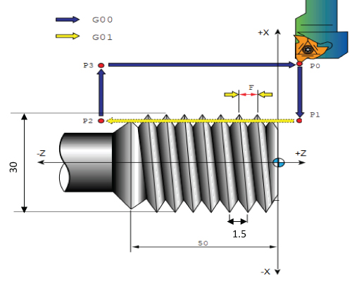 Máy tiện CNC từ Mazak, Doosan hoặc Haas cho phép lập trình chính xác bước ren và chiều cao ren thông qua hệ thống điều khiển Fanuc hoặc Siemens. Theo Modern Machine Shop, khi lập trình ren, cần nhập các thông số: