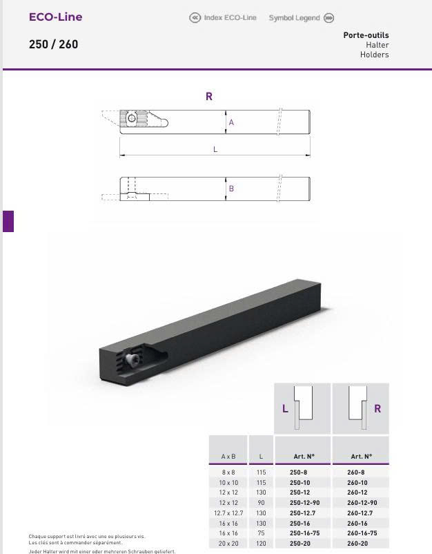 Thiết kế kỹ thuật của Cán dao cắt đứt APPLITEC 260-10