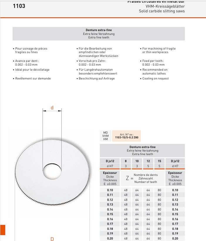 Dao phay đĩa APPLITEC 1103-30/8-1.2 Z100 – Cắt rãnh & cắt đứt chính xác cao